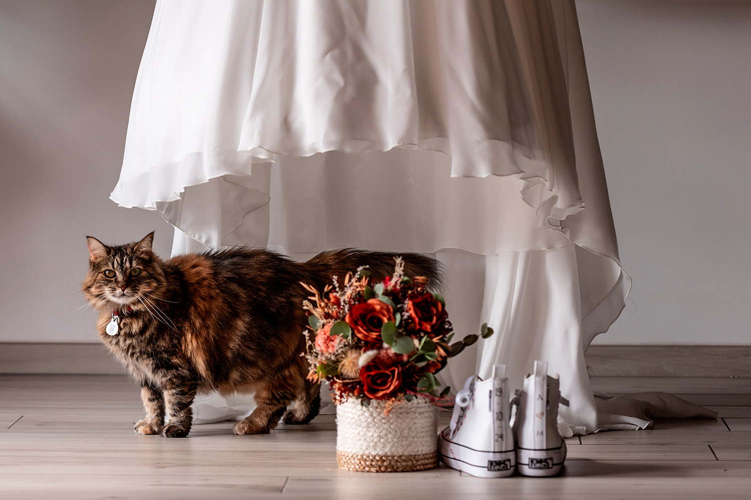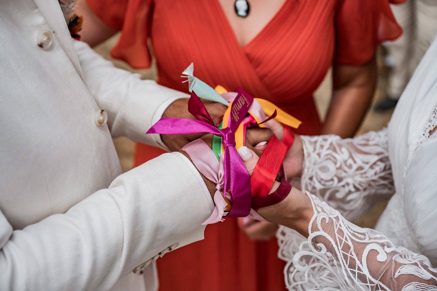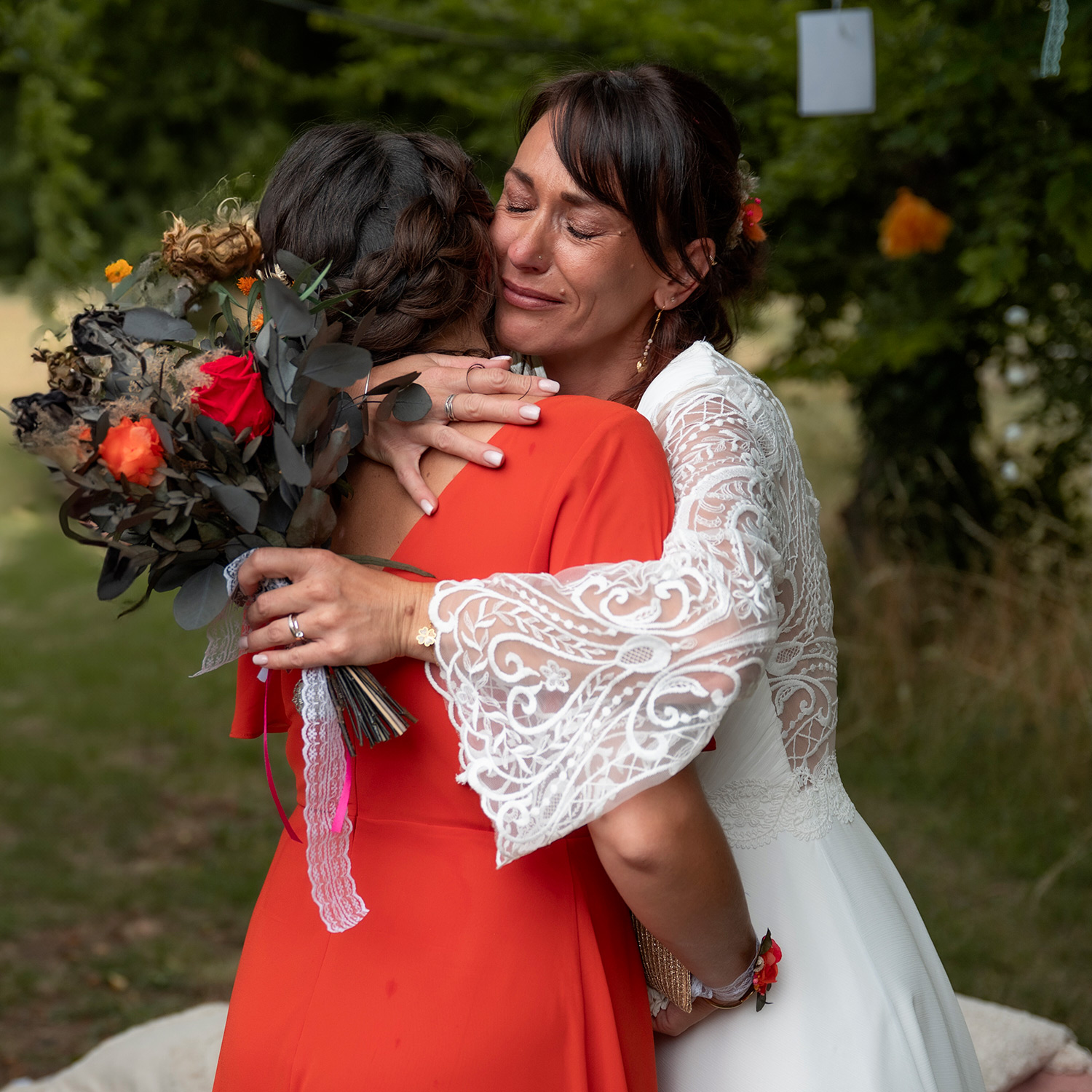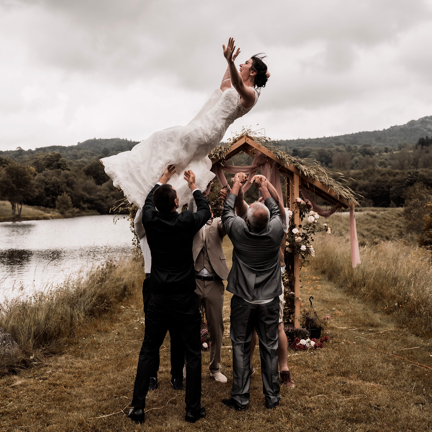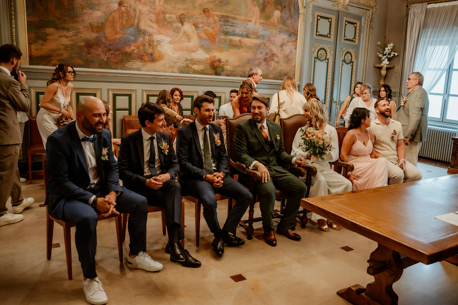 Les respirations profondes, les derniers détails ajustés, les regards échangés avec vos proches. C’est un moment suspendu, intime, rempli d’une douce tension. Les émotions montent sans encore déborder.