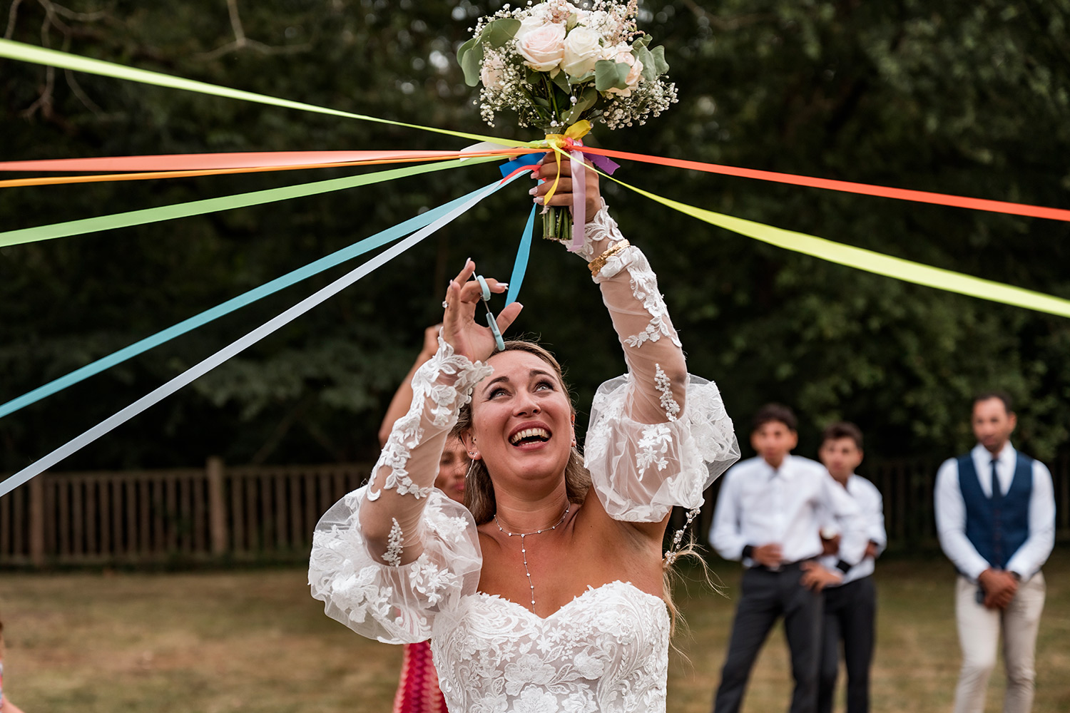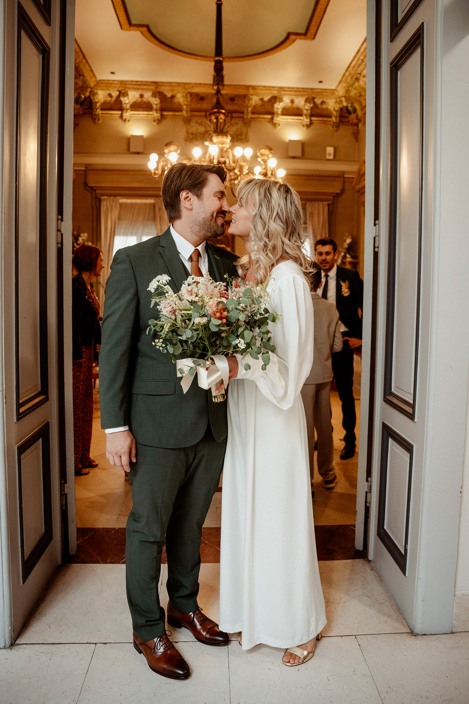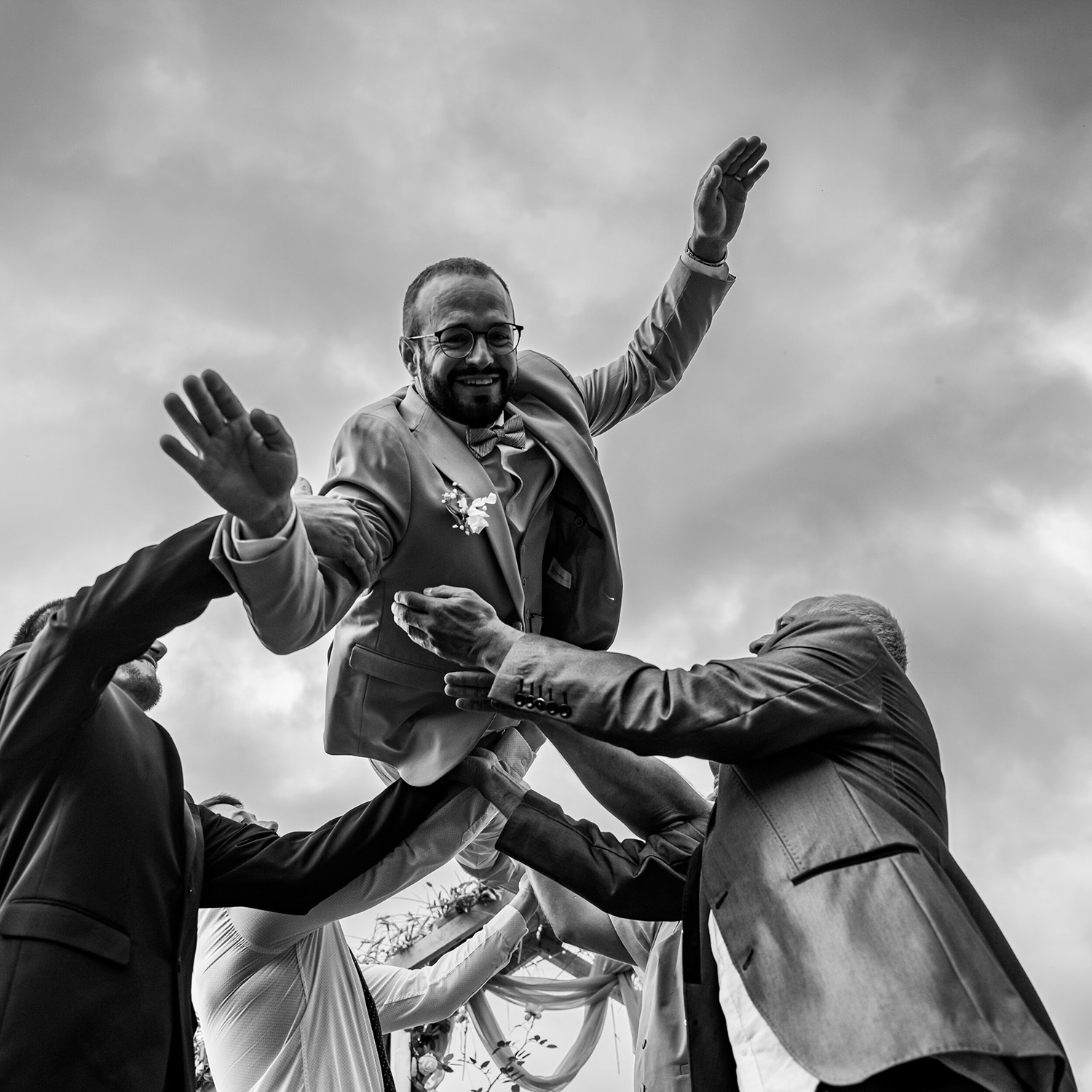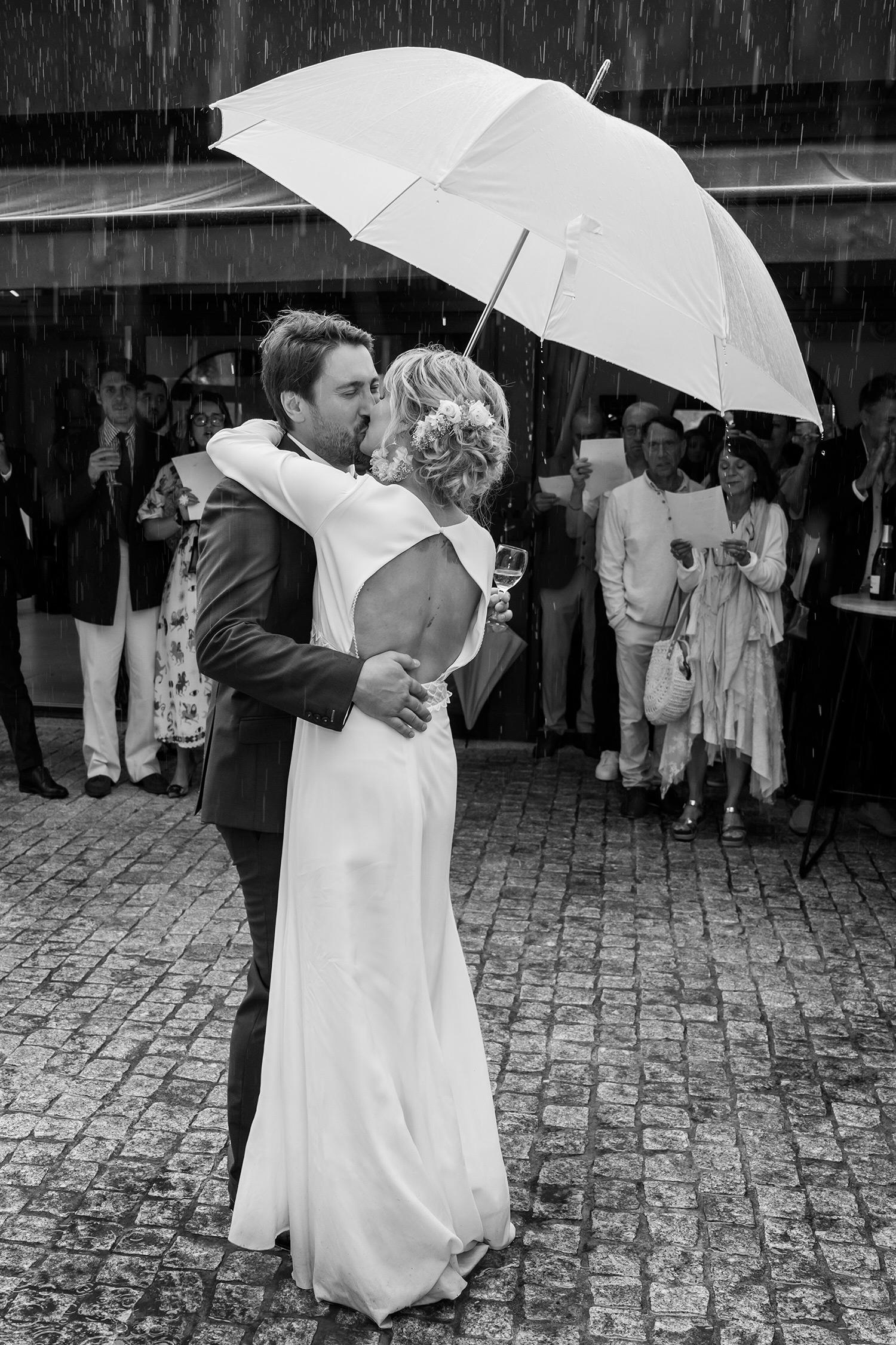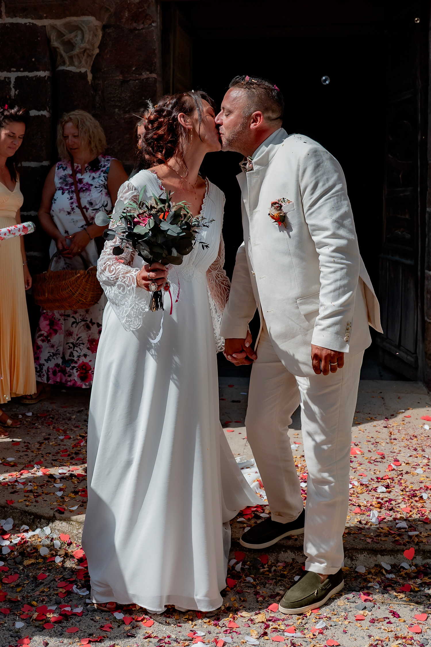Les respirations profondes, les derniers détails ajustés, les regards échangés avec vos proches. C’est un moment suspendu, intime, rempli d’une douce tension. Les émotions montent sans encore déborder.