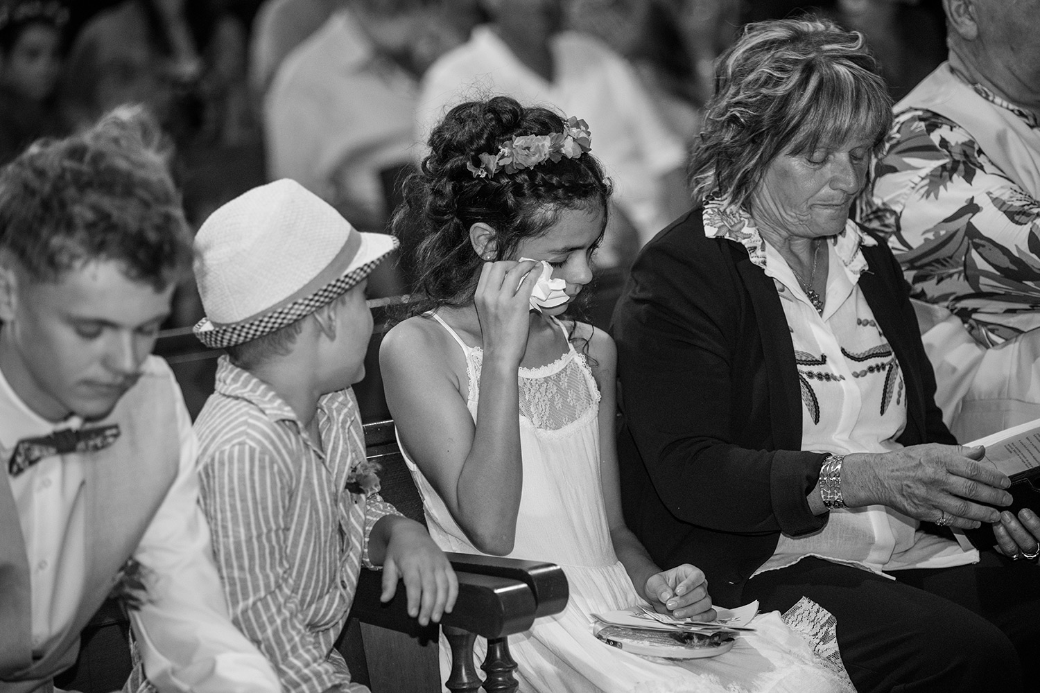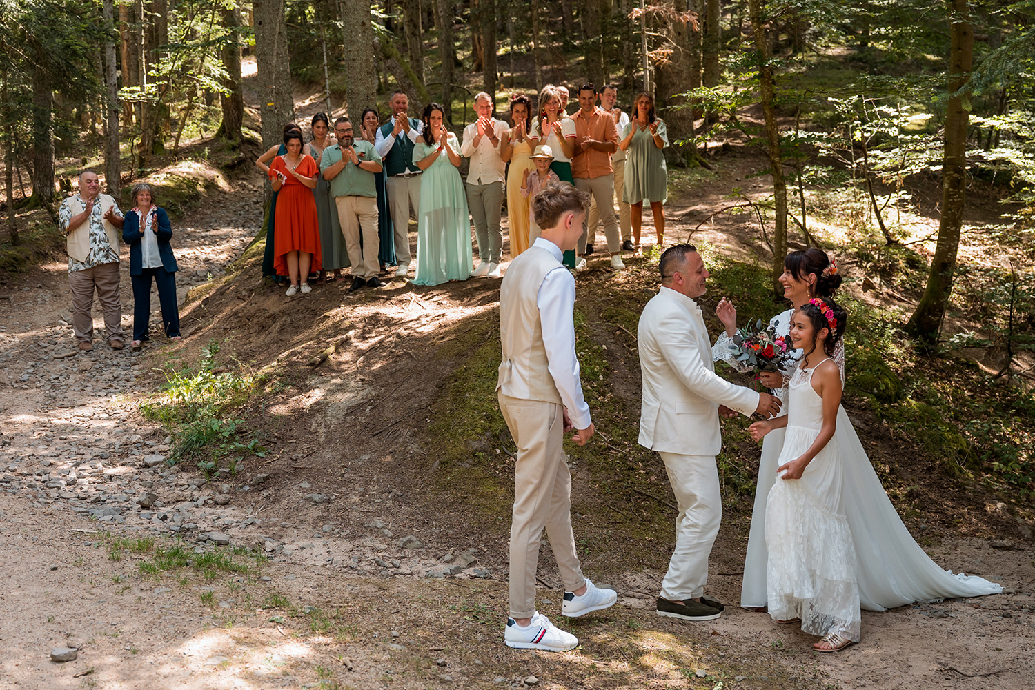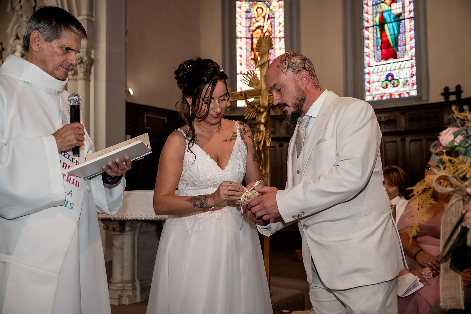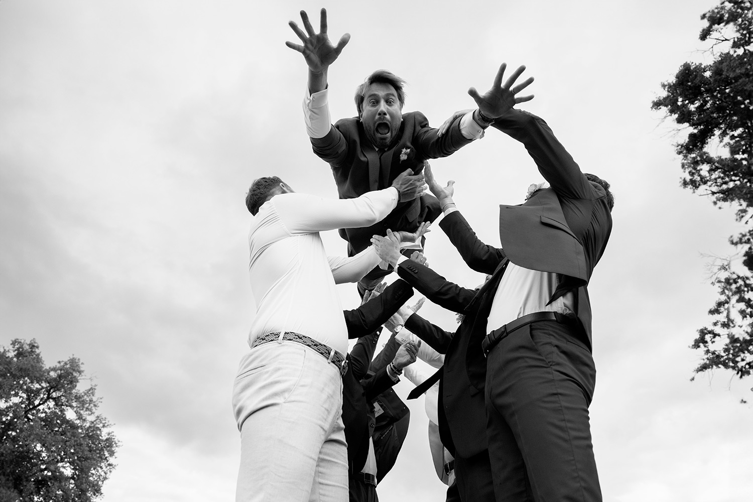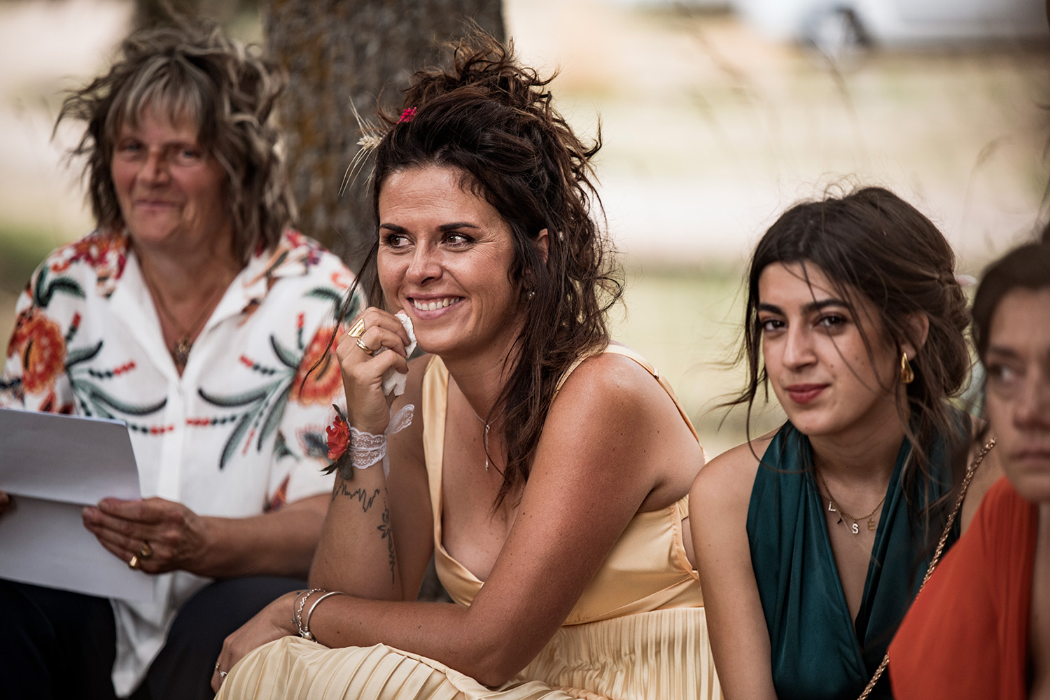 Les respirations profondes, les derniers détails ajustés, les regards échangés avec vos proches. C’est un moment suspendu, intime, rempli d’une douce tension. Les émotions montent sans encore déborder.