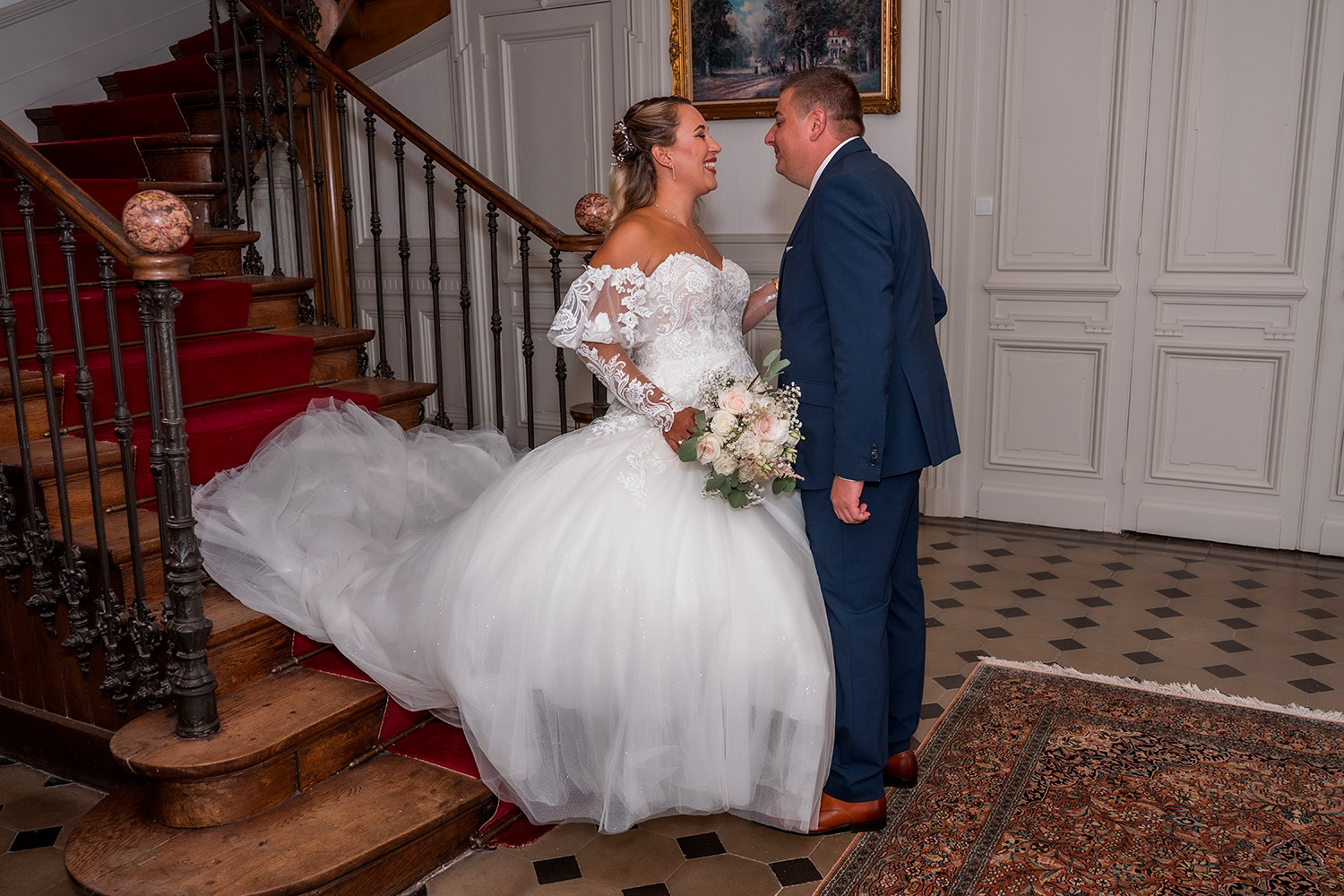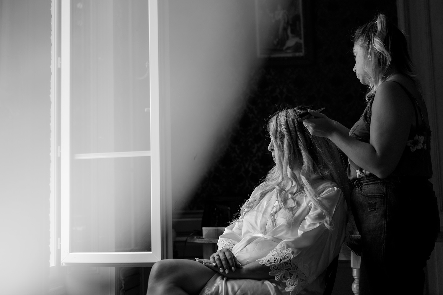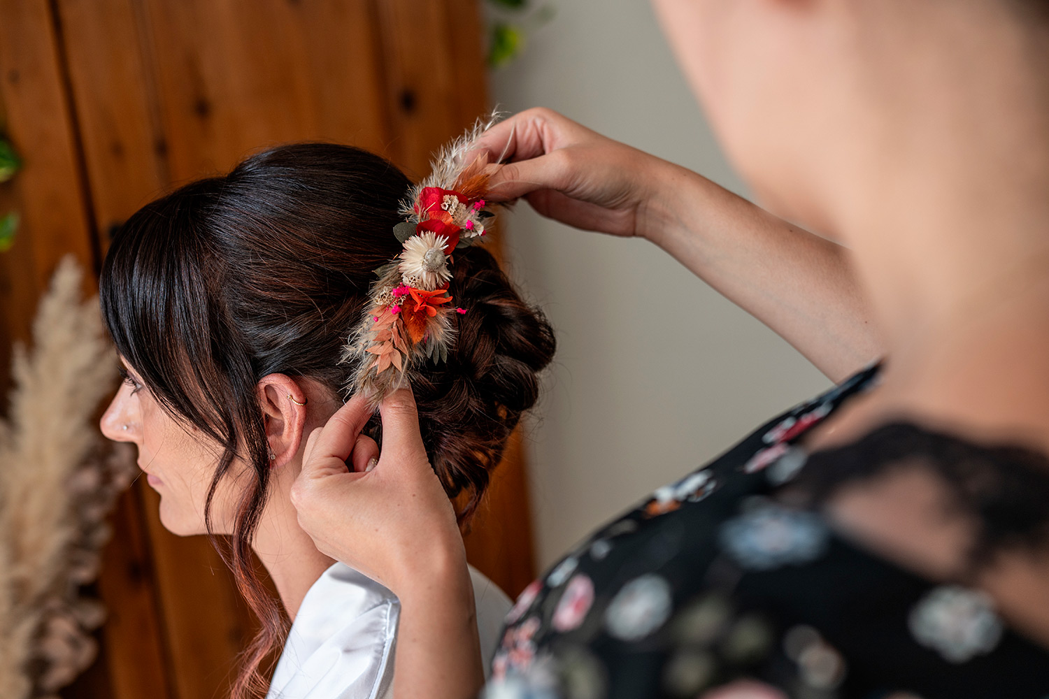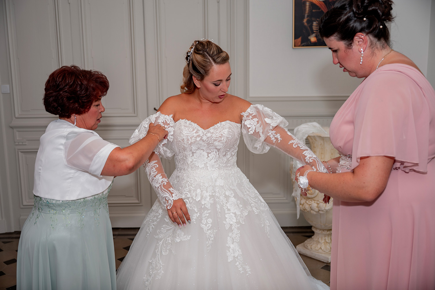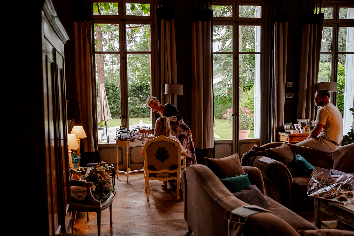 J’accorde une attention toute particulière à chaque détail : les accessoires choisis avec soin, le maquillage qui se pose délicatement, la coiffure qui prend forme, les tenues qui s’enfilent, aussi bien pour Madame que pour Monsieur.