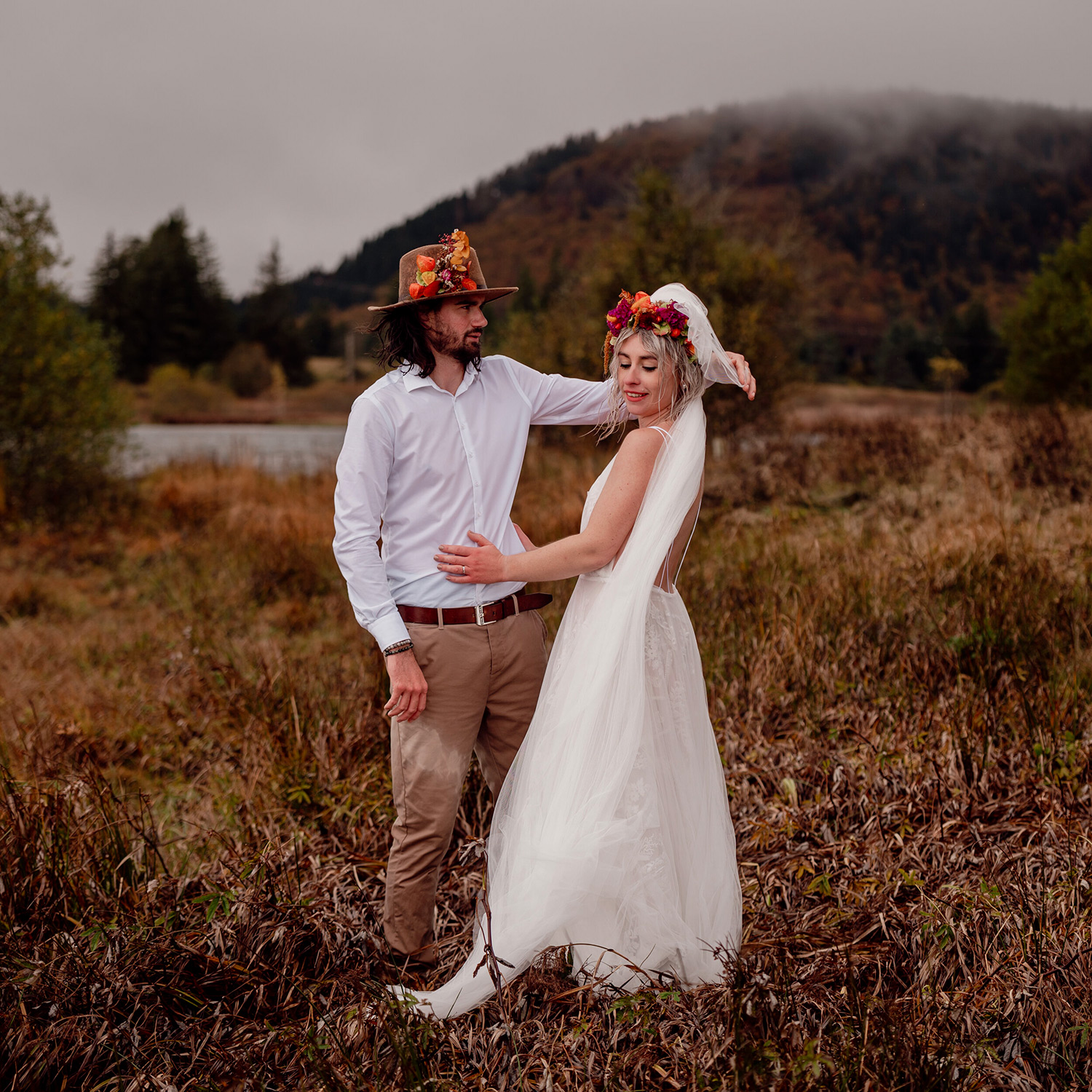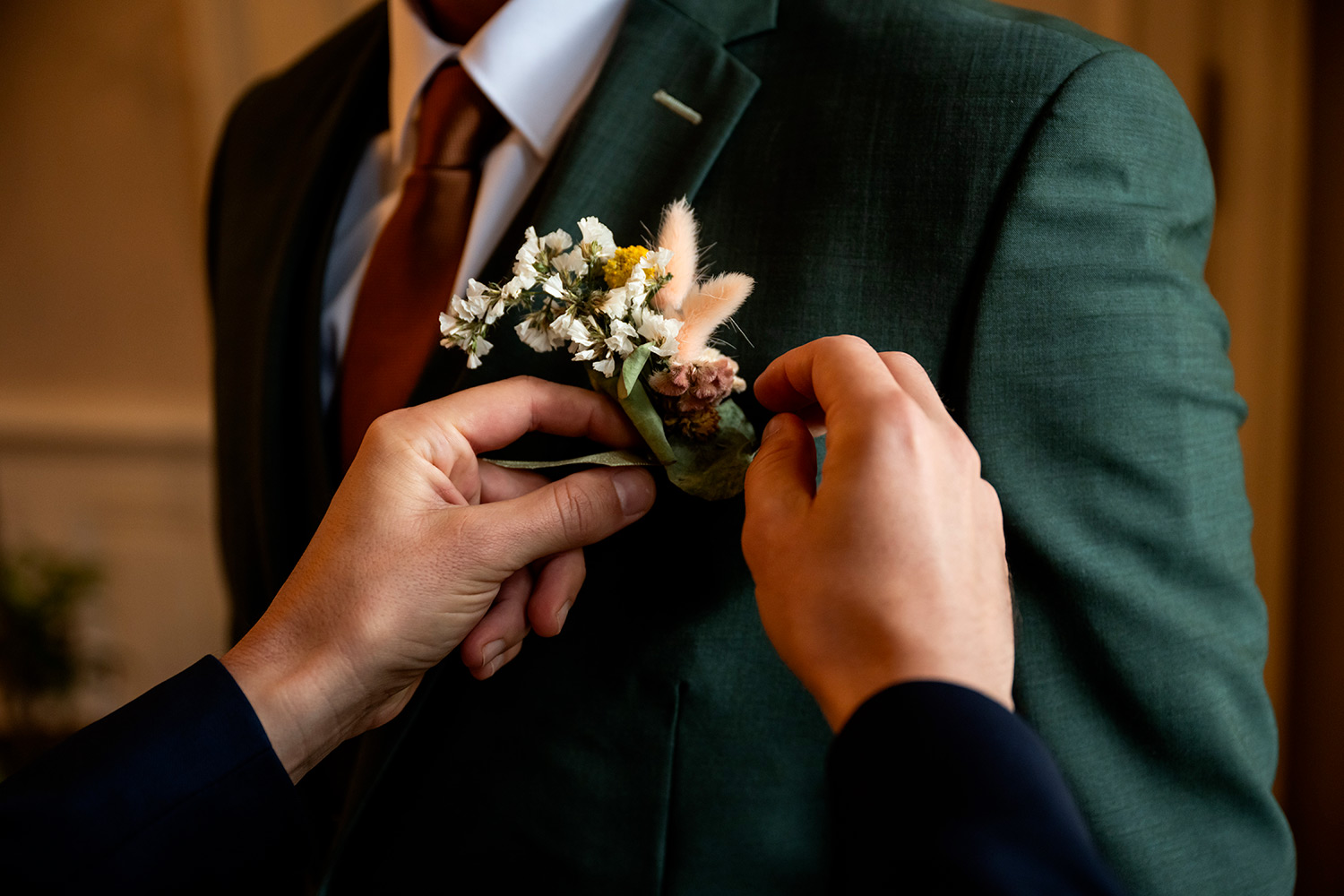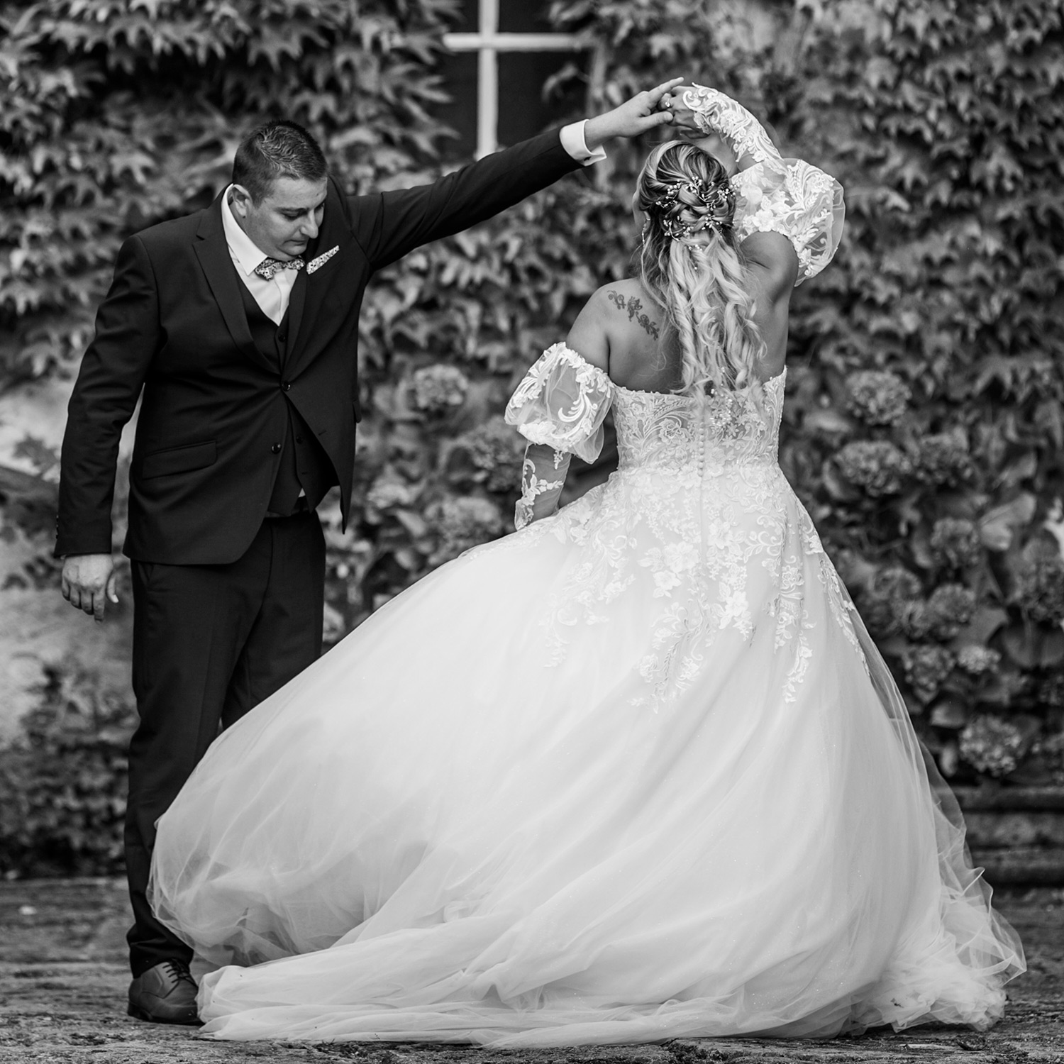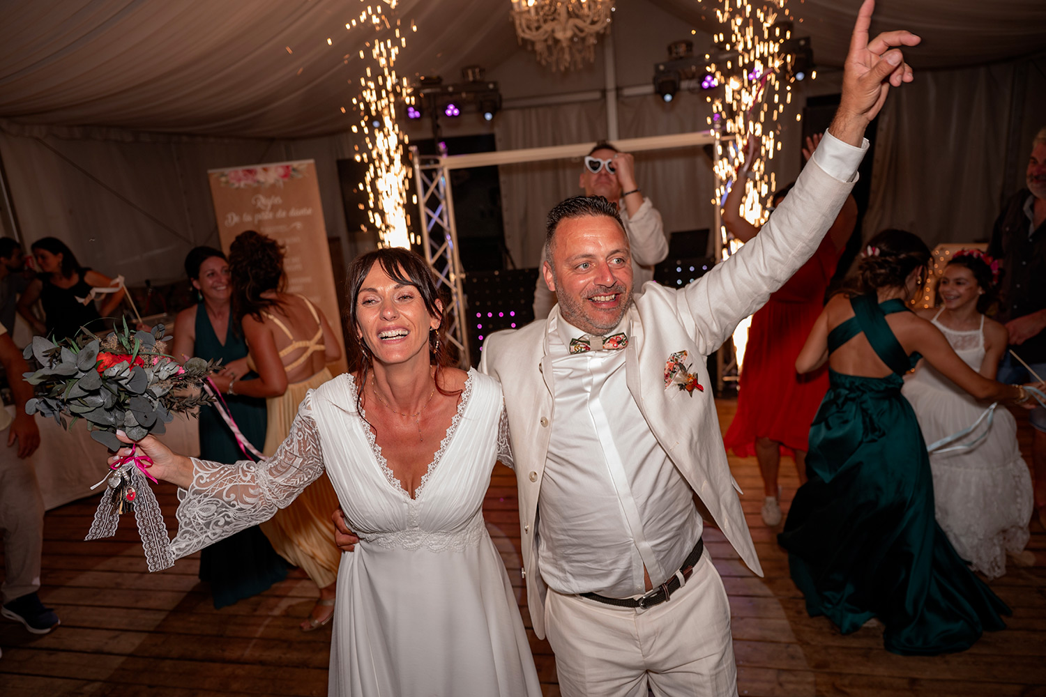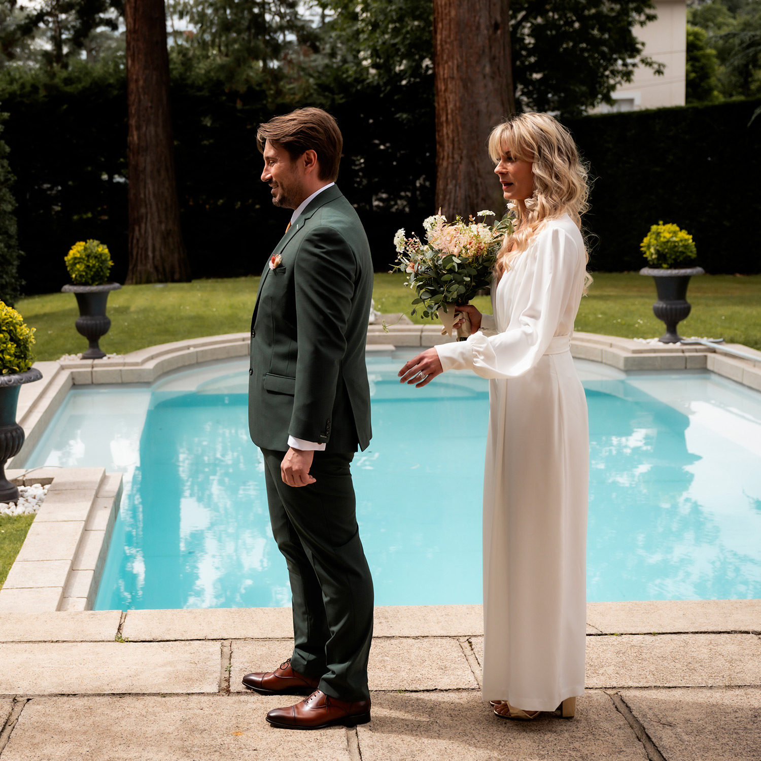 J’accorde une attention toute particulière à chaque détail : les accessoires choisis avec soin, le maquillage qui se pose délicatement, la coiffure qui prend forme, les tenues qui s’enfilent, aussi bien pour Madame que pour Monsieur.
