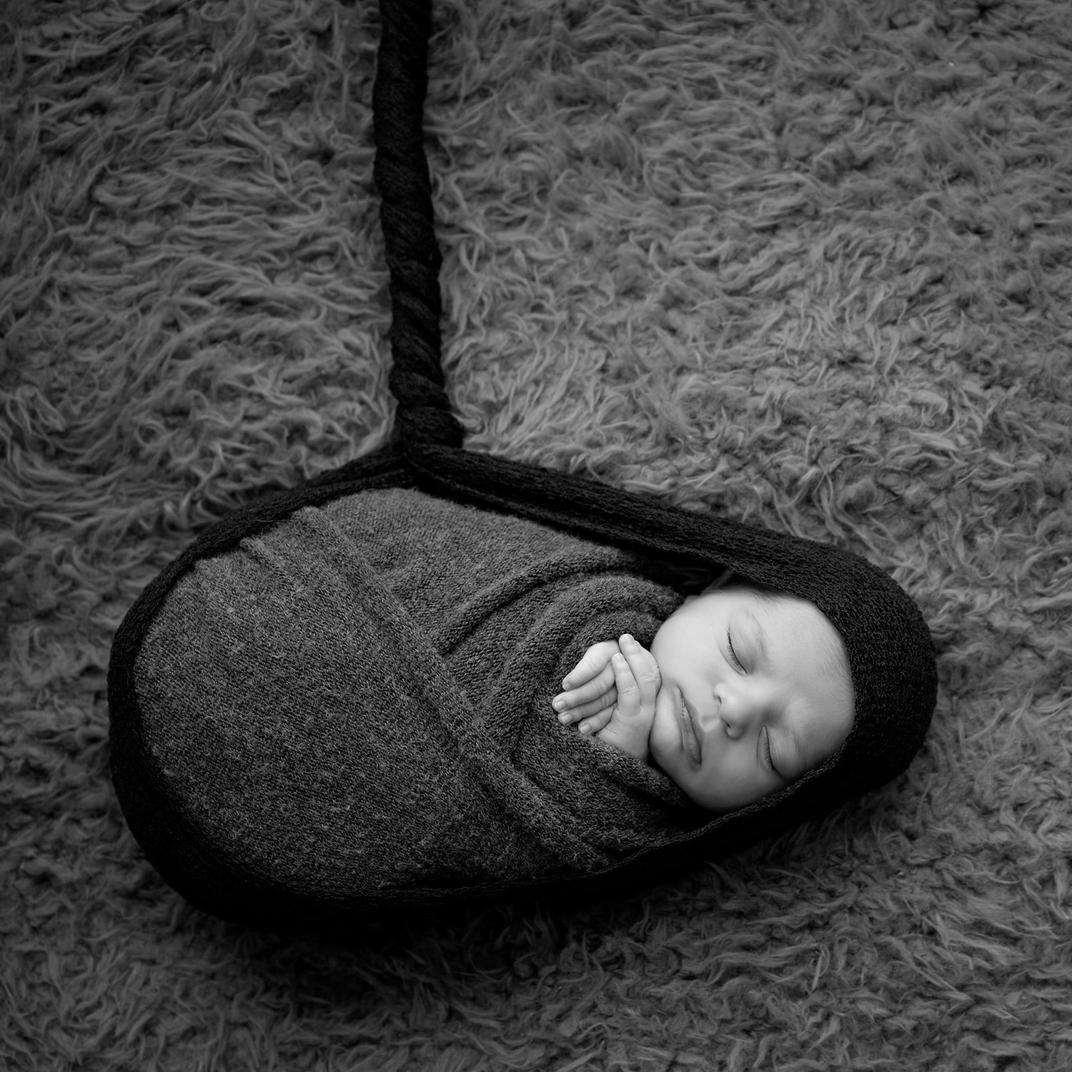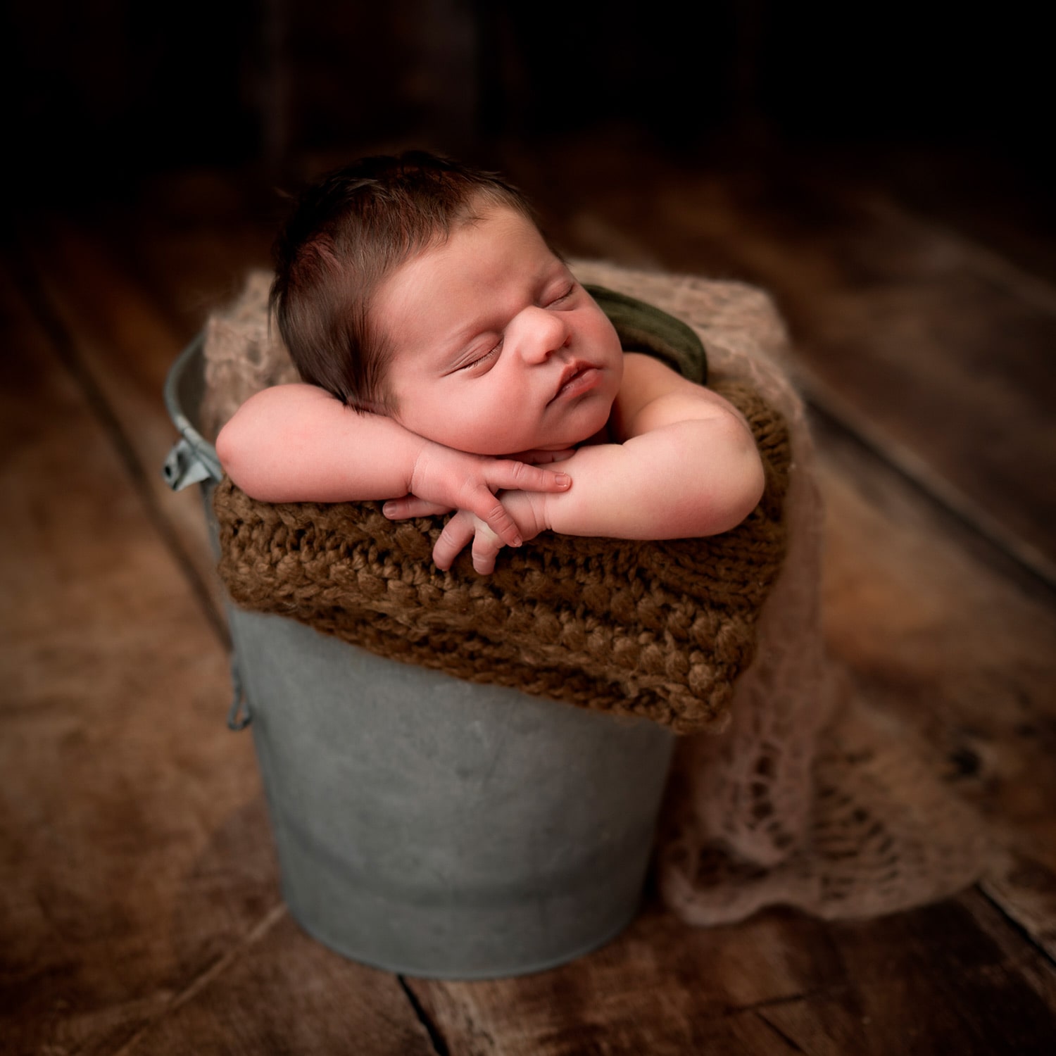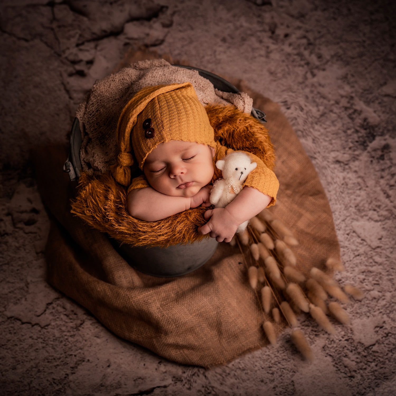 Photos de bébé seul (endormi, emmailloté dans différents contenants